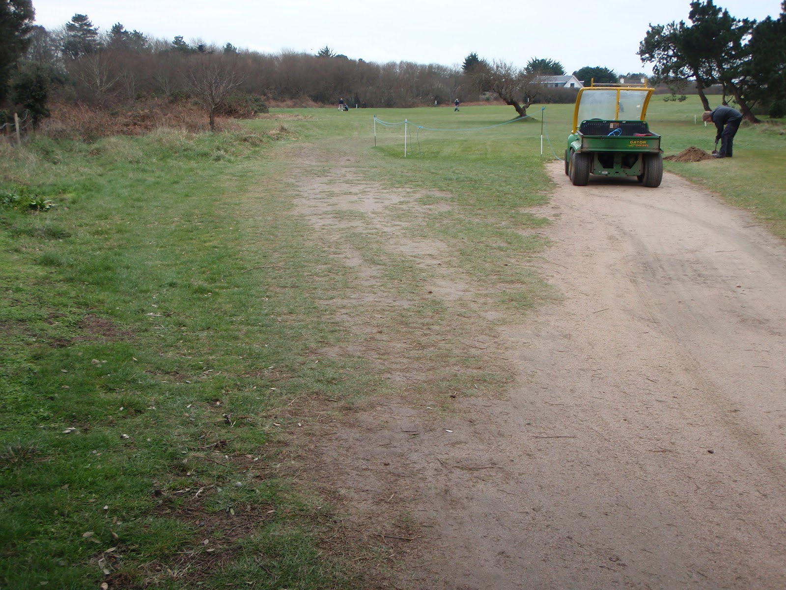 Follow a request from the Ladies Section, we have started work on a new ladies tee at the 2nd hole. The new tee will offer an improved line into the fairway and will be situated to the left side of the path, in the area adjacent to the existing tee. Measurements have been taken to ensure the overall length of the hole remains the same.